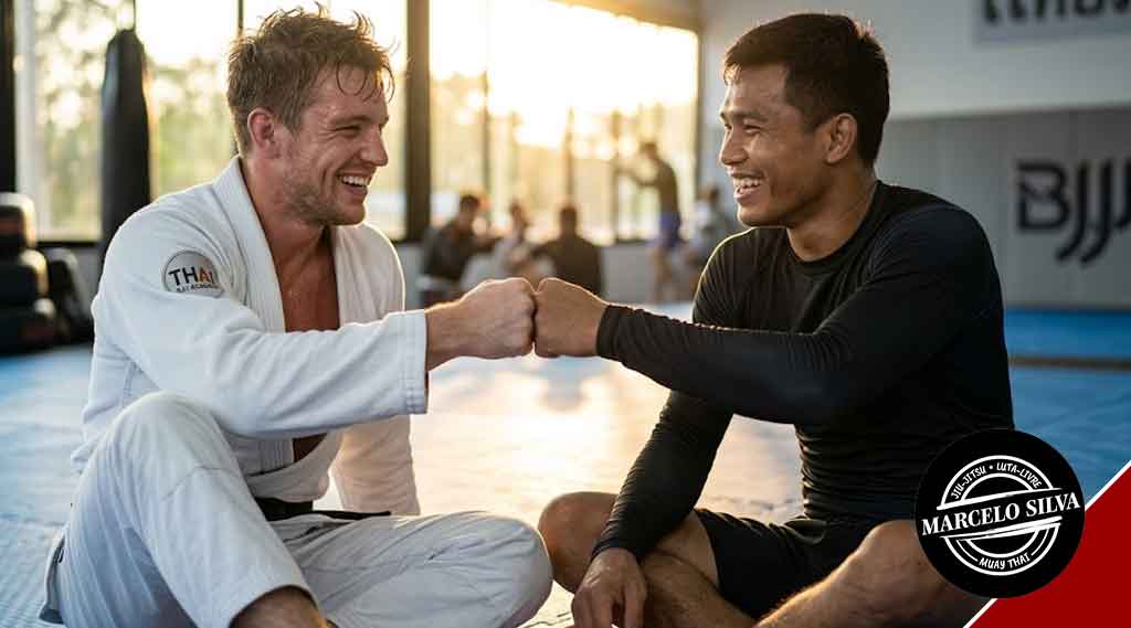 Q5: Why is the community at Marcelo Silva Martial Art so important for happiness? A: Because humans are social animals. The Oxytocin released from training with friends creates a “Safety Net” for your brain, reducing the biological impact of daily stress.